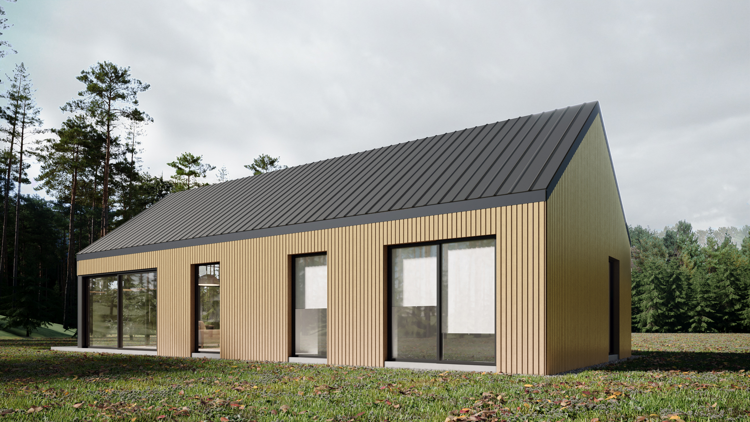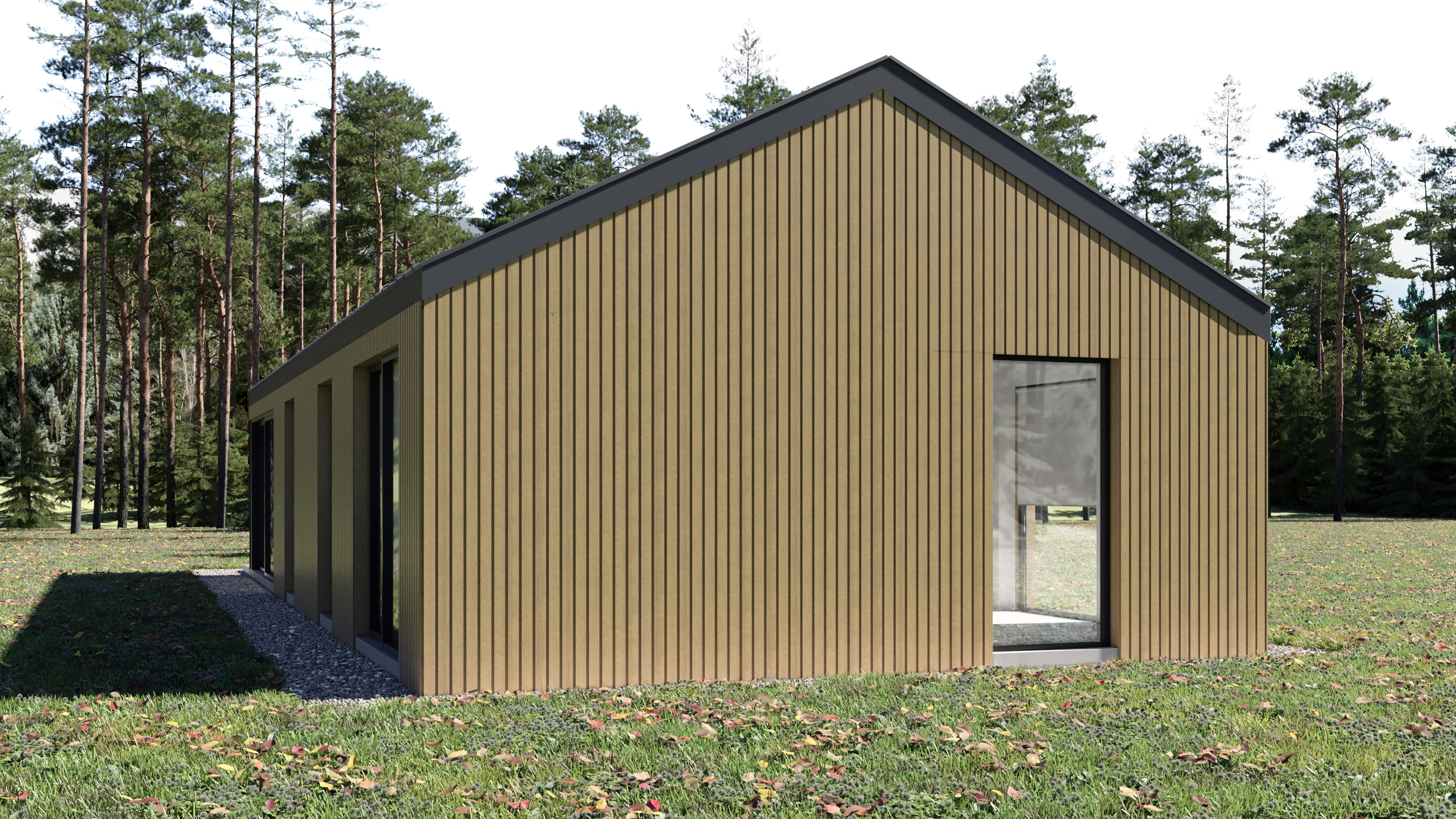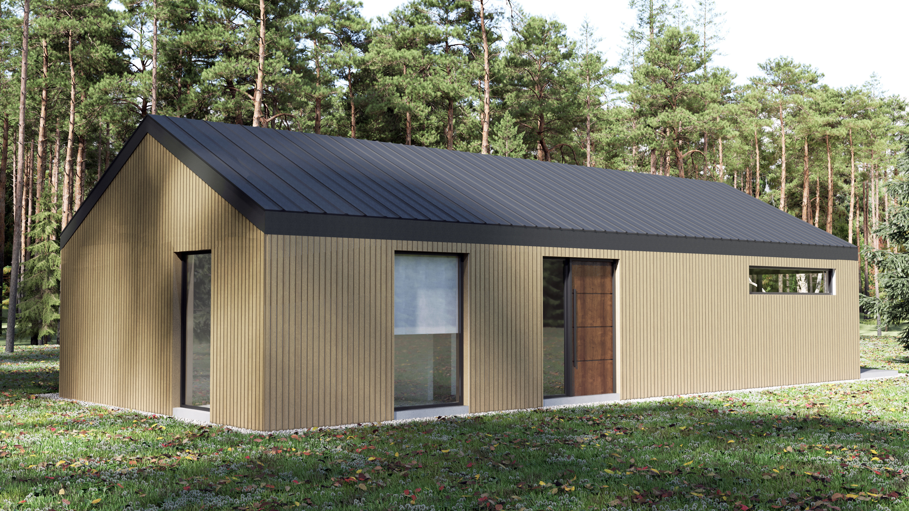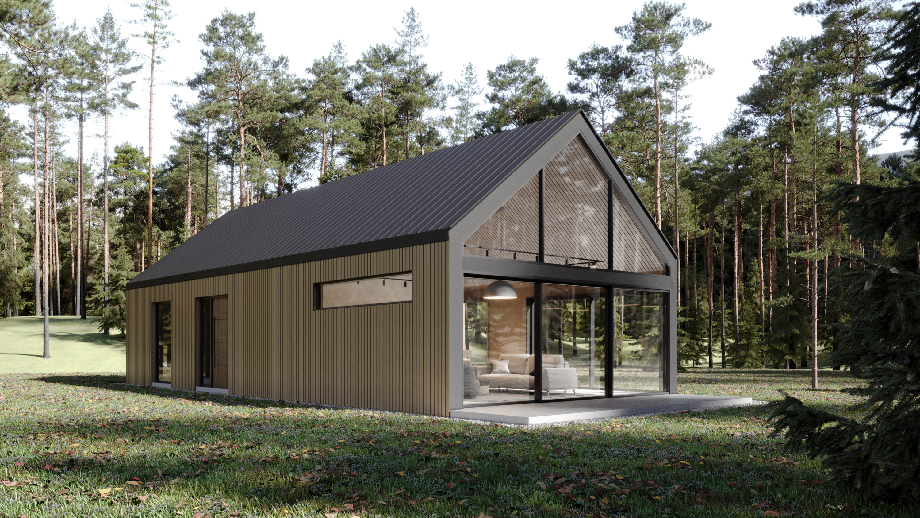 The Mystiq model embodies modern chalet design with its dramatic window wall and single-story layout. Featuring a private loft and expansive wrap-around deck, this cabin offers both intimacy and grandeur with contemporary mountain style.